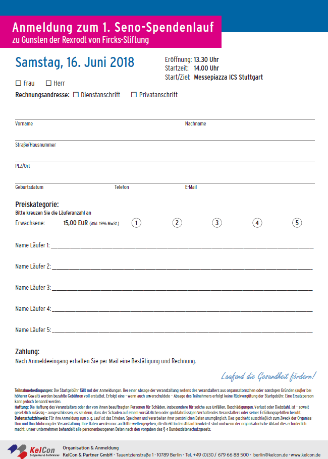 Die Rexrodt von Fircks-Stiftung hat mit dem Projekt “gemeinsam gesund werden” eine Möglichkeit geschaffen, Müttern zusammen mit ihren Kindern einen Reha-Aufenthalt zu ermöglichen, der von einem interdisziplinären Team betreut wird. Therapiebausteine sowohl für die erkrankte Mutter als auch für ihre Kinder ermöglichen eine umfassende Unterstützung und Stärkung der ganzen Familie. Erstmalig möchten wir Sie und alle Sportbegeisterte zum Seno-Spendenlauf einladen. Die Veranstaltung ist öffentlich und bietet allen Interessierten die Möglichkeit, laufend Gutes zu tun.